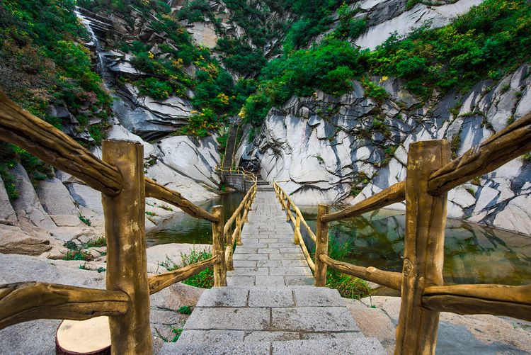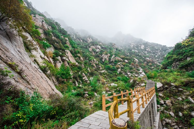 从这里开始,我们就要开始一段并不算辛苦的爬山路段了,虽不辛苦,但在雨天却是惊险有余,原本坡度就略大的石阶在雨天变得有些湿滑,建议大家上行时务必抓牢护栏。